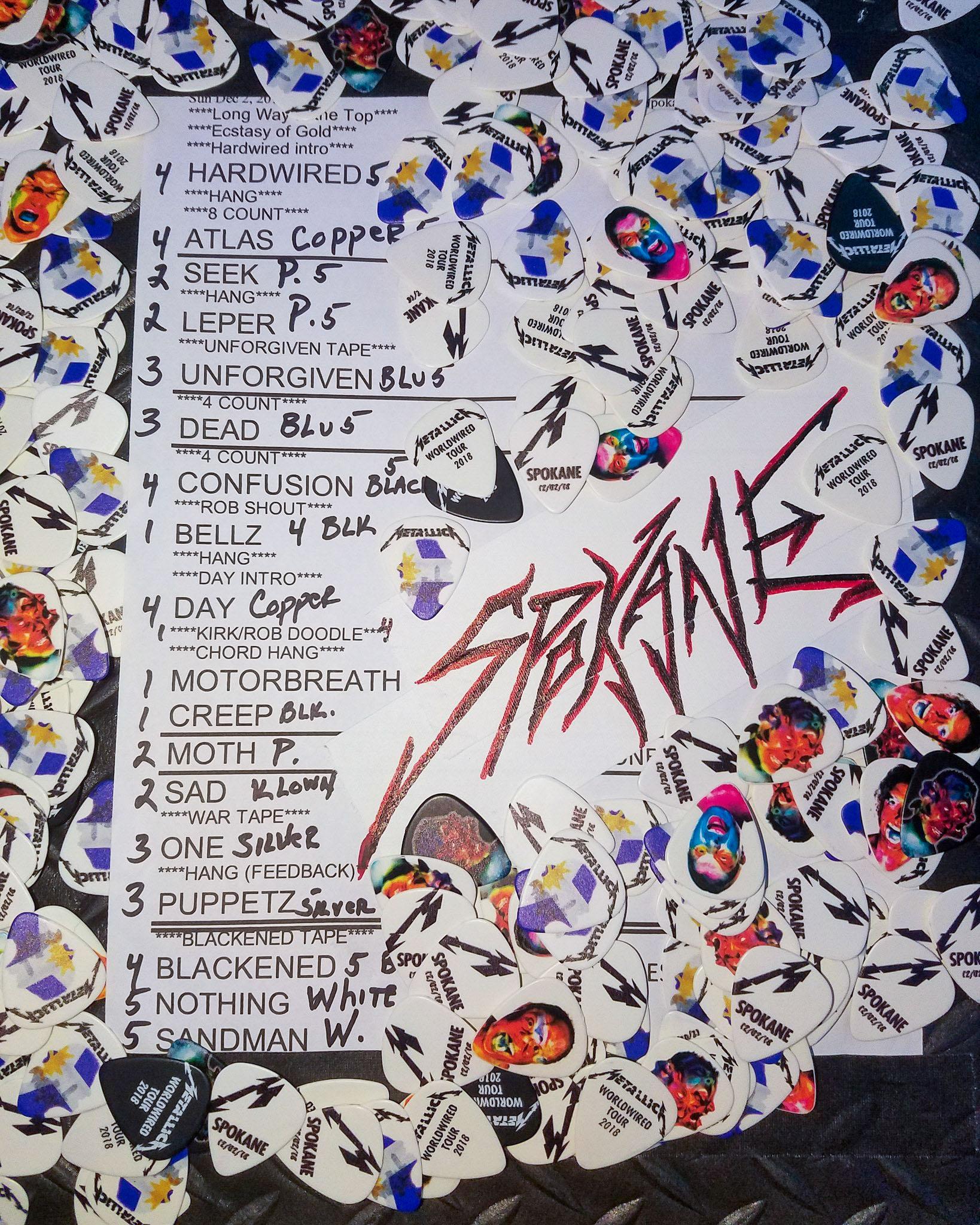 This was the first time that “Hardwired,” “Atlas, Rise!,” “Leper Messiah,” “The Unforgiven,” “Now That We’re Dead,” “Confusion,” “The Day That Never Comes,” “Motorbreath,” and “Moth Into Flame” were played in Spokane.