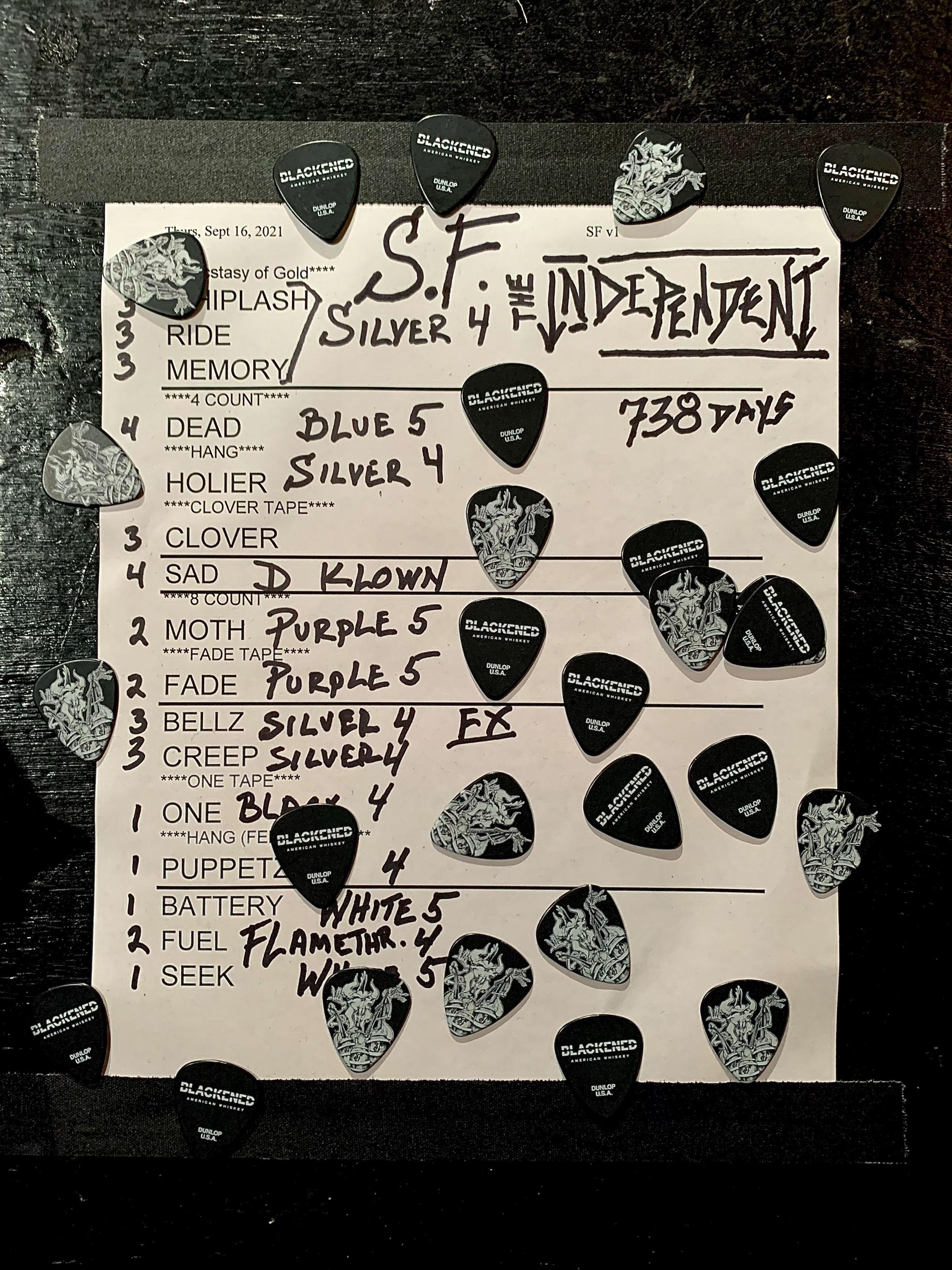Metallica performed 16 songs off of eight albums: ***Kill ‘Em All*** (2), ***Ride the Lightning*** (4), ***Master of Puppets*** (2), ***…And Justice for All*** (1), ***Metallica*** (2), ***Reload*** (2), ***S&M*** (1), and ***Hardwired…To Self-Destruct*** (2).