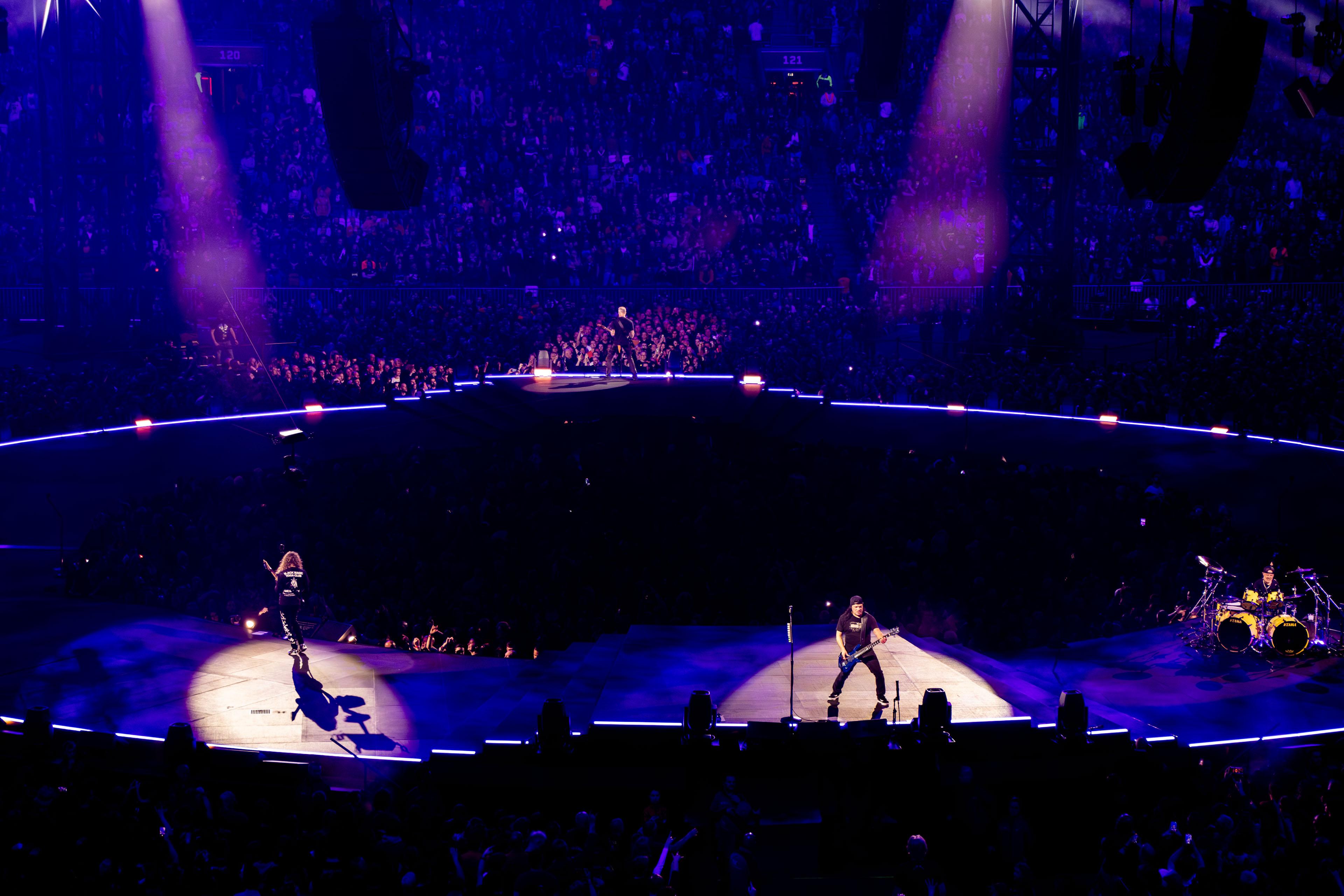 Metallica performed 16 songs off of 8 albums: ***Kill ‘Em All*** (1), ***Ride the Lightning*** (3), ***Master of Puppets*** (3), ***Metallica*** (3), ***Load*** (1), ***ReLoad*** (1), ***Death Magnetic*** (1), and ***72 Seasons*** (3)